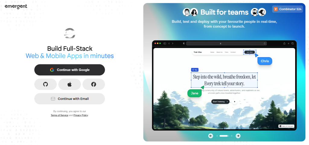 For example, you can describe a church website with sermons, donation features, and event pages, and Emergent will build it in minutes – no coding or manual setup required.